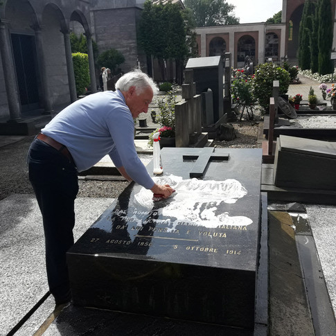 Le due lastre laterali in granito grezzo anni hanno rivisto il loro aspetto originale che era stato coperto da anni di polvere, così come la tomba in marmo nero lucido su cui le scritte in oro che erano quasi totalmente scomparse sono state riprese pazientemente.